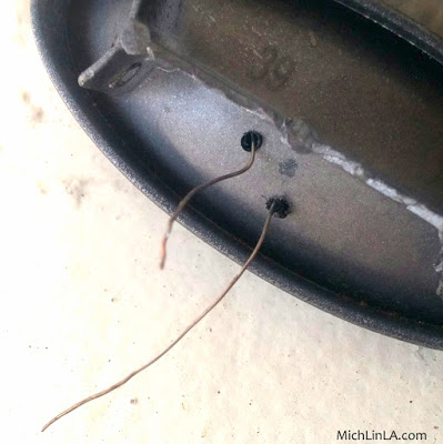 Next steps: I melted holes in the flanges, spray painted everything silver, and added two jump rings for attaching a necklace. Here's what it looks like in back so you can see what I mean.
