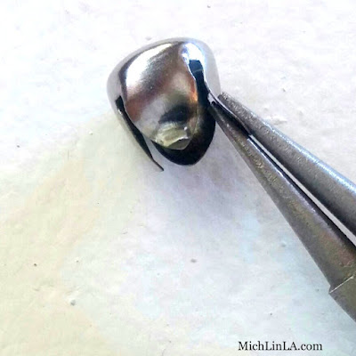 The round bead will protect the metal and make a prettier, unmarked petal! This photo shows what I mean: