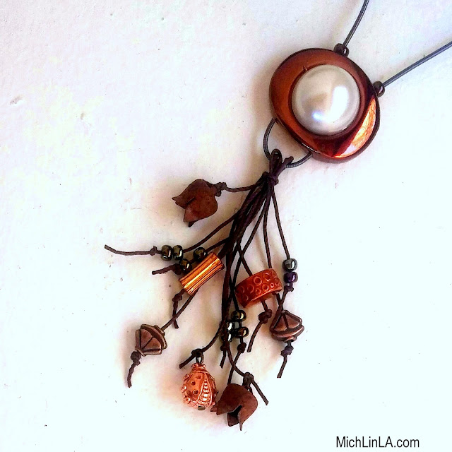 I had lots of fun raiding my stash for copper-toned treasures to tie onto the tassel.