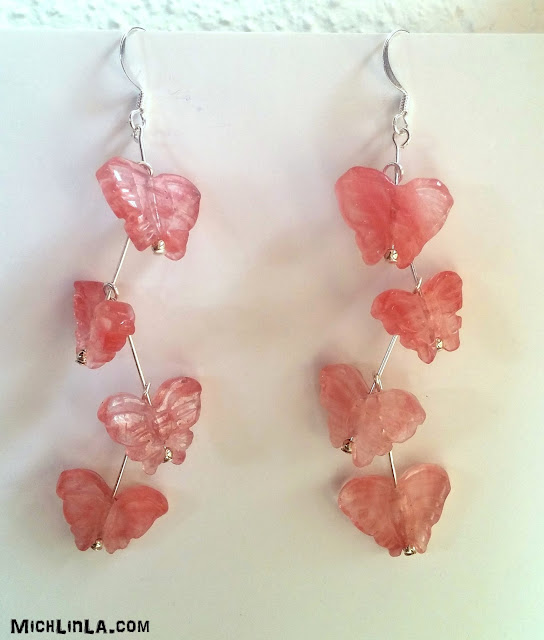 Aren't they fun? I used some little polymer clay butterflies from a bracelet I took apart, and some carved beads in a stone called strawberry quartz. There are so many cute butterfly beads out there, I bet you find just the thing to make your heart flutter.