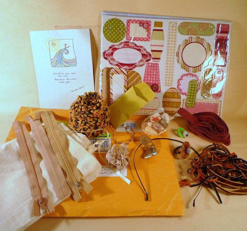 My mission - and I have chosen to accept it - is to find something in this random collection of ephemera that inspires a project. She asks us to first comment on our impression of the items, then create an interesting...thing...of some sort, and write up a little tutorial on how we did it.