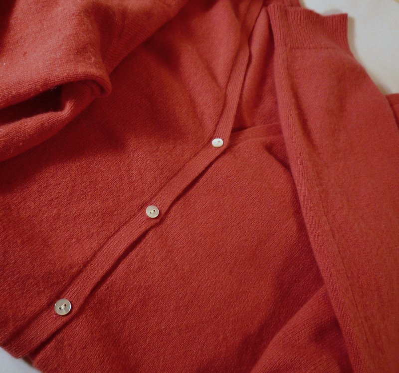 I found this gorgeous coral-colored cashmere sweater at a thrift shop: