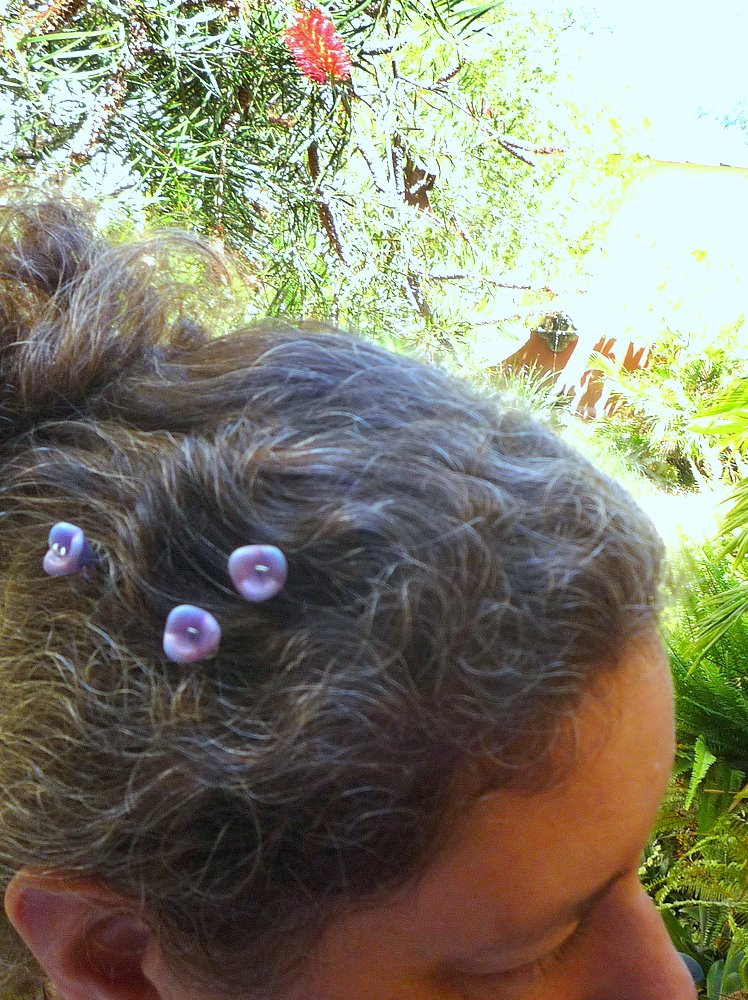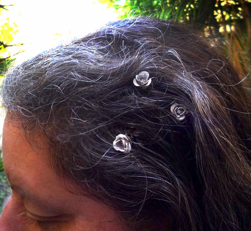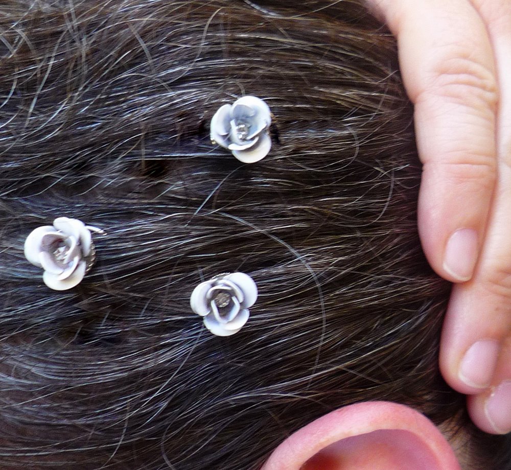 Little hair ornaments. The cutest! Really fun worn sprinkled amidst an updo.