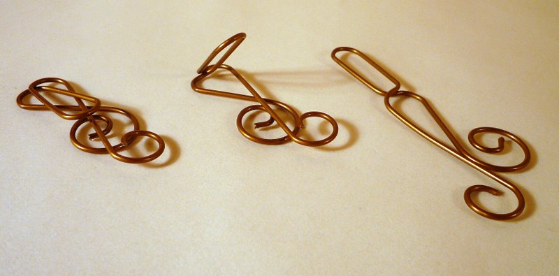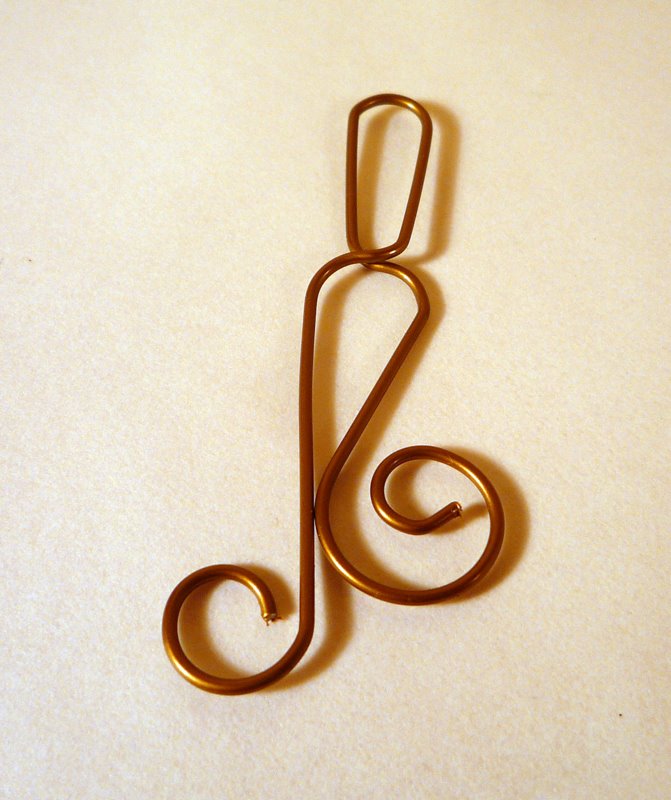 I just flipped up the 'u'-shaped paperclip part, so it ends up being above the musical note. Then I uncrossed the wires of the musical note, so there are two swirls side-by-side. Like this: