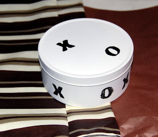 It's a portable tic-tac-toe game. What a clever, wild outcome from the starting point of a credit card! I love the crisp black and white graphic look of it. I especially love her genius idea for the X's and O's -