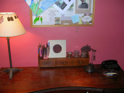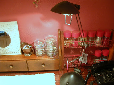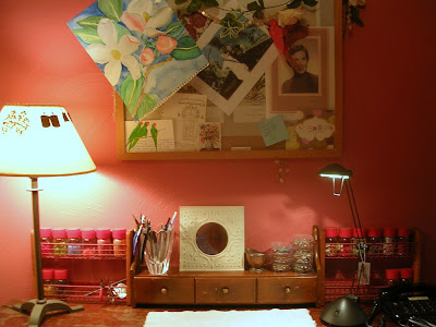 It's quite a small work surface, though. And all my frequently-reached-for tools, findings and oddments reduced and cluttered the space even further. What I really need - what I've always hankered for - is a big rolltop desk. One with lots of cubbies and drawers and shelves. But I don't want to give up Grandma Eva's vanity. And I don't really want to spend money on a rolltop desk.