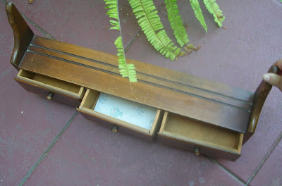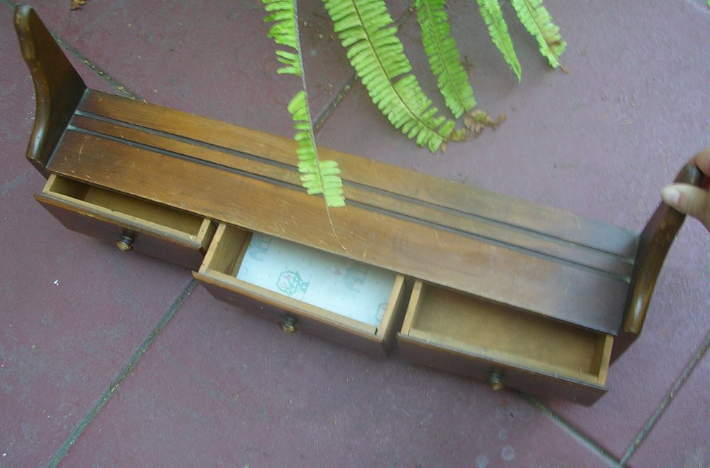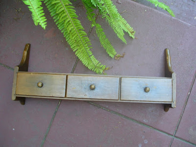 It's a kitschy kitchen wall shelf. With three li'l spice drawers, and a plate rail on top. For a dollar, I couldn't resist!