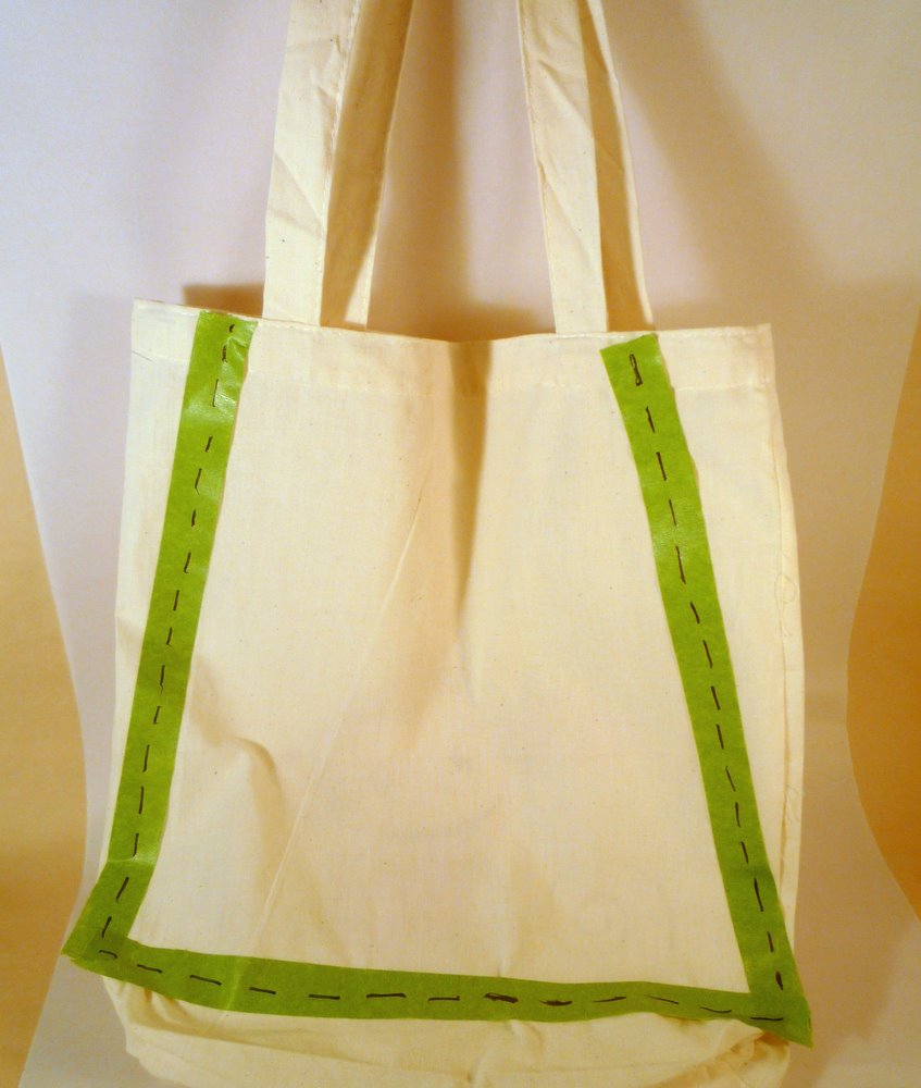 All you need are scissors, a cheap tote bag with one side plain, and markers or paint.