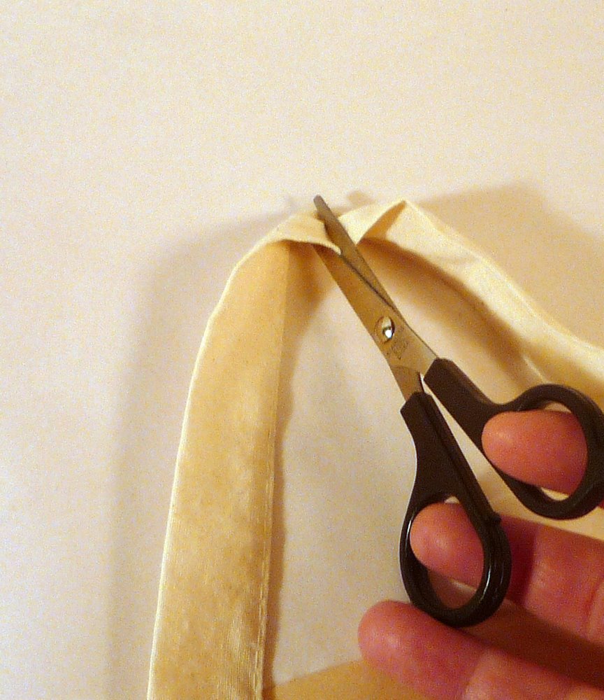The front had a monkey cartoon, but I used the undecorated back. I cut a rough triangle shape, starting at the outside of the handle.