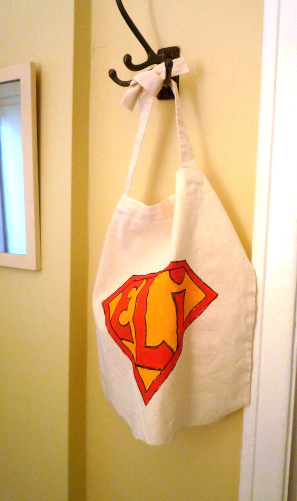 Now just decorate with lettering, symbol or logo. Spend as much or as little time on this as you have. The easiest route: a quickie sketch with magic markers. "Superkid" or a Batman logo or whatever your little hero requires.