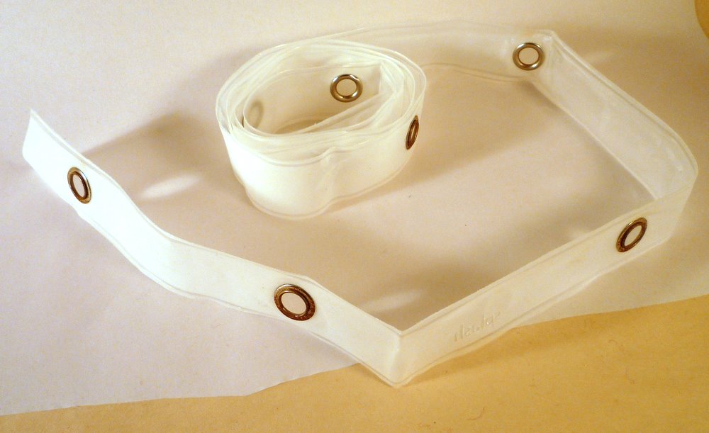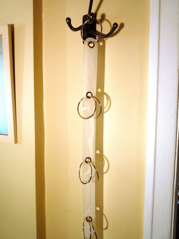 That charming strip with silver grommets is what you get by ripping the top off a shower curtain. Don't even bother with scissors - just grab the end and start peeling, it zips right off!