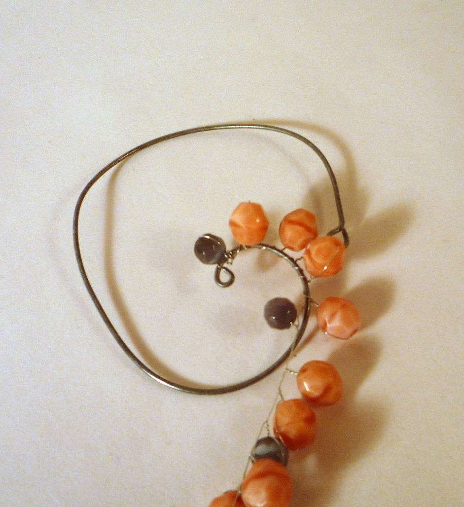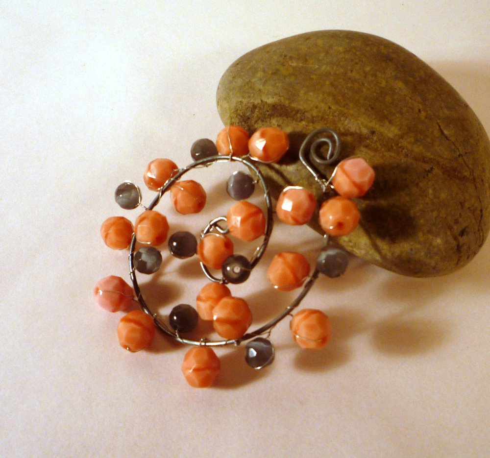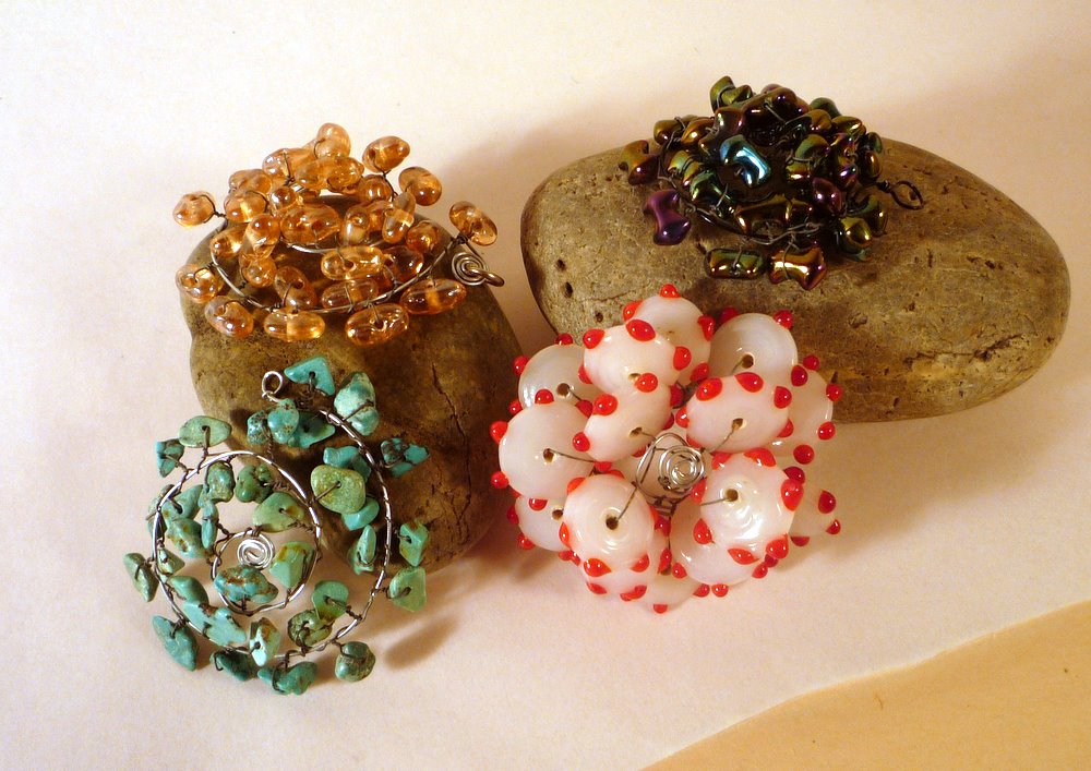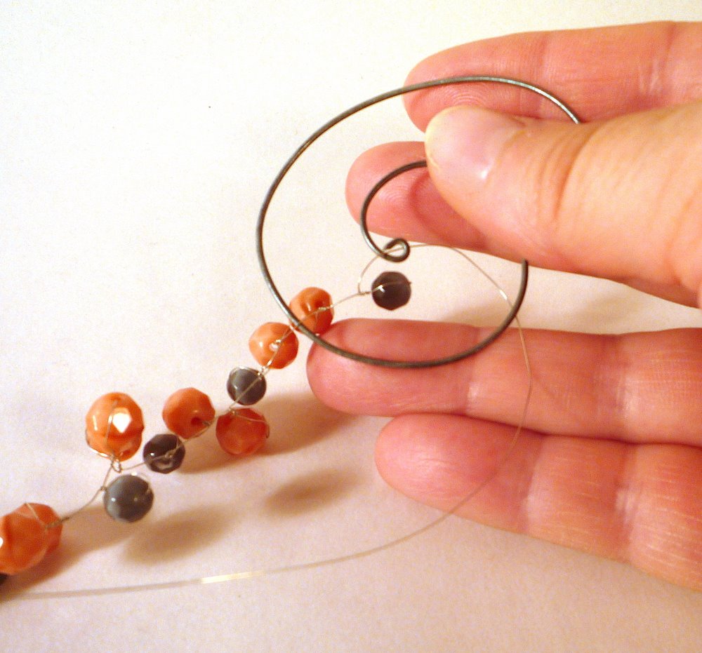 You took that out-of-control spiral, and turned into a pretty bauble for you! If you ended up with too much extra wire between your beads and the wire loop end, as I did on this piece, you can either trim it shorter, or spiral it up, as in the photo above.
