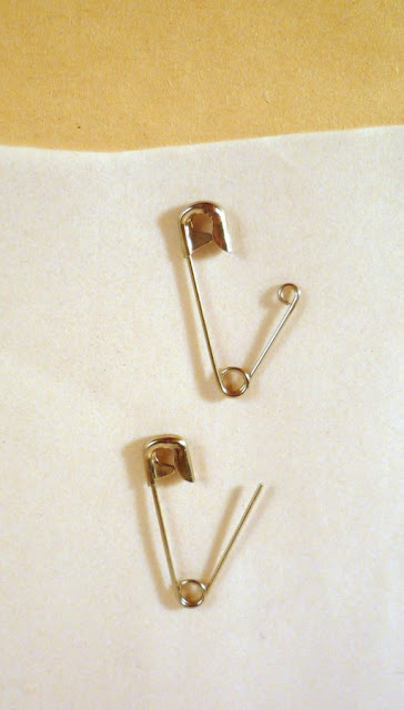 With all your might, turn a teeny loop. It's not easy - safety pins are made of ultra-hardened Kryptonite. Here's the before and after.