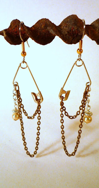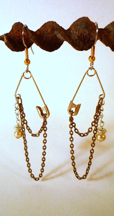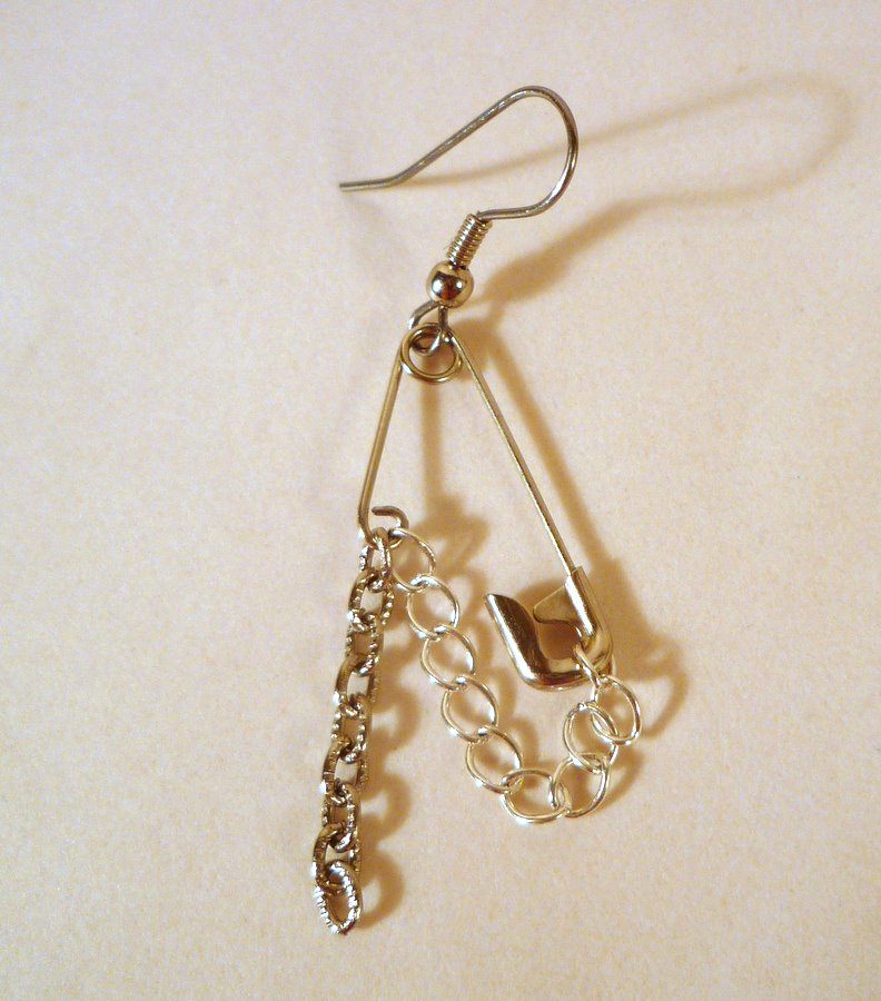 Add another little chain hanging down, then attach your earwire to the other end of the safety pin.