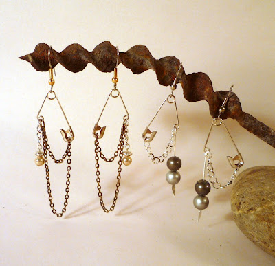 I was carried away by a brief creative session, and made these little punk earrings. They please me.