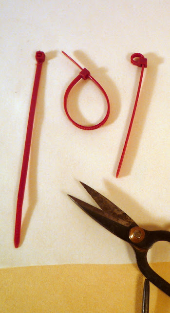 Click here to visit the zip-tie leaf tutorial. By the way, I forgot to mention where I found my huge bag of zip-ties:
