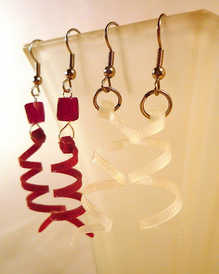 You want those earrings, I know you do. To make a Shirley Temple curl, wrap a zip-tie tight around