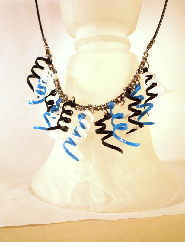 Here comes the third in a series of fun jewelry made from zip-ties. (You can visit the first two here and here.) Today, just a quickie tutorial for some more zippy fun.