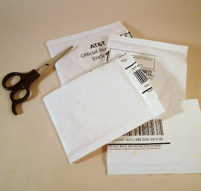 So here's the big idea. Used padded mailers. Recently I received this lovely free gift from some company I've never heard of. (Tee hee.)
