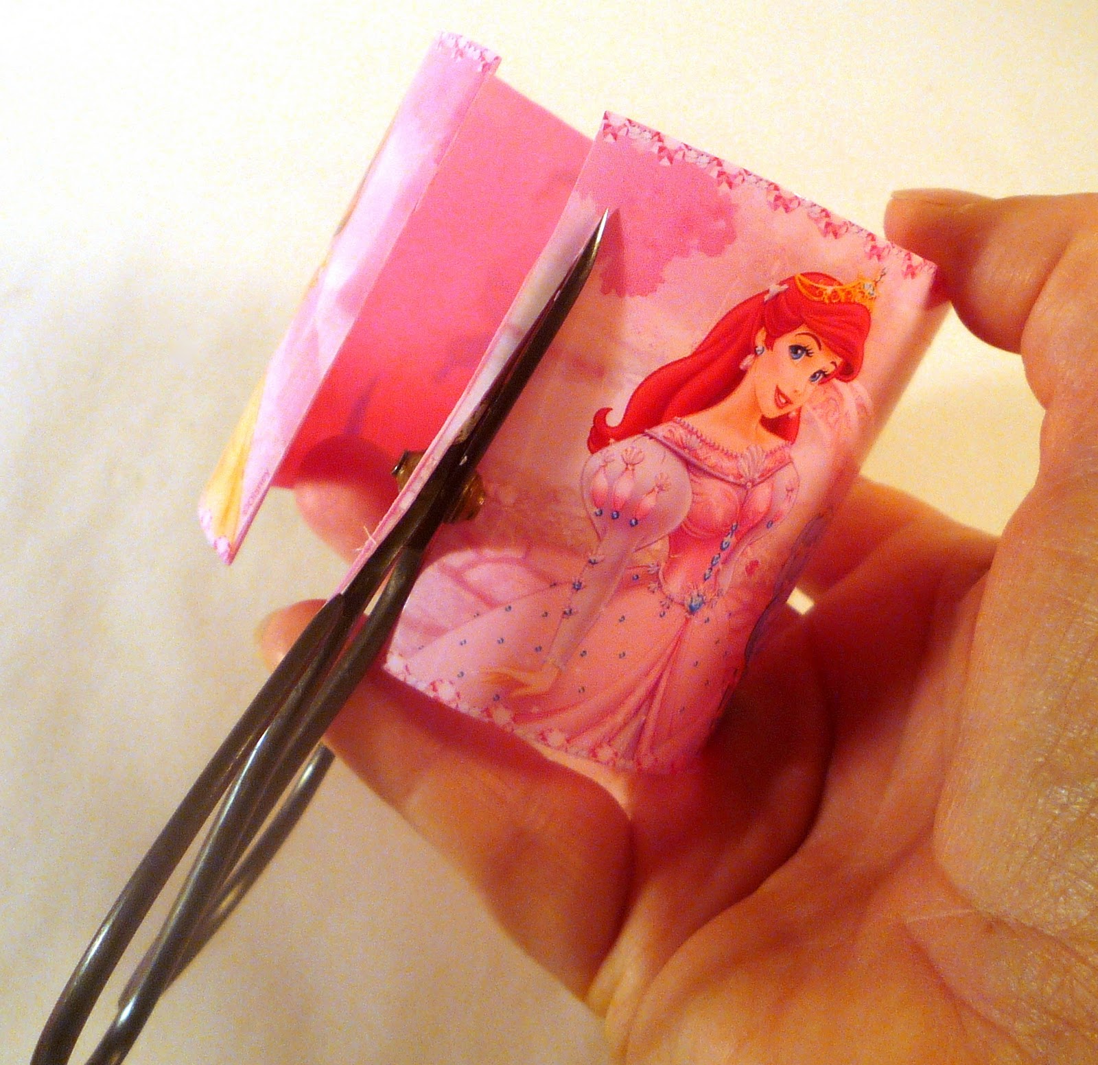 Then, while waltzing with a Beast in a castle ballroom (okay, it was my husband Jeff, and we went to Starbucks), I had a new idea. I came home home and snipped individual princesses out of the second cup.