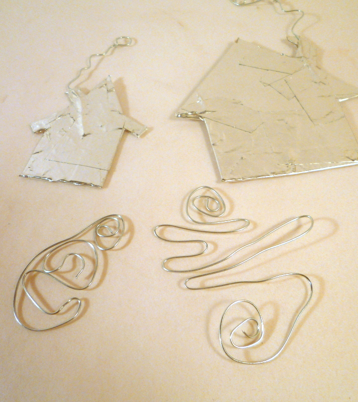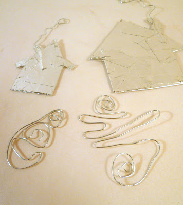 This was a very fun construction. Want to try? Here are the steps. 1. Twirl a small loop on one end of a piece of heavy wire. 2. Loop it one-and-a-quarter times around something roughly finger-shaped.