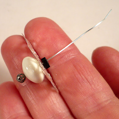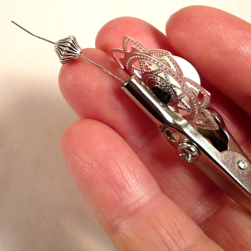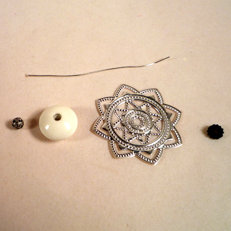 I gathered a headpin, some beads, a pretty filigree piece, and a teeny rubber washer or cushioning thingy.