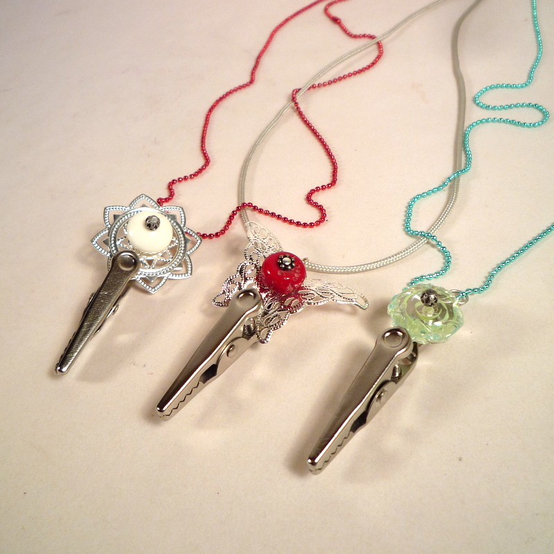 I even like it just as a pendant-with-potential. you know? because you NEVER know when you'll need a "third" hand to hold something at a moment's notice. like a recipe card or your shopping list or a hanky or... well, the possibilities are endless! it's just brilliant Michelle, and so pretty to boot!