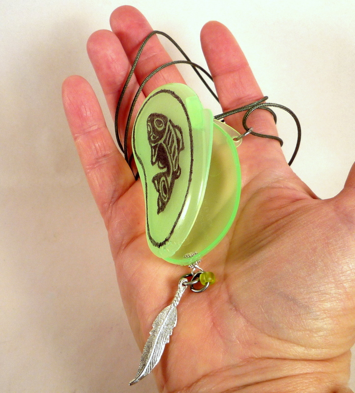 A funny locket with a tribal salmon. Cute? Strange? I likee, hope you guys do, too.