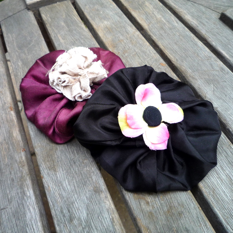 Very easy to make from any fabric round. (Yo-yo tutorial here.) However, I believe that these particular ones should actually be called ya-yas. Why? Because I made them out of these: