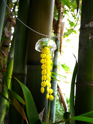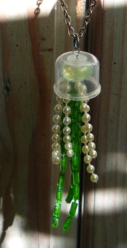 Jellyfish! It doesn't get any better, I don't think. Is that a lampwork bead with yellow tentacles? How dang lucky I just happened to buy a bag of lampwork beads that fit absolutely NO project I could think of!
