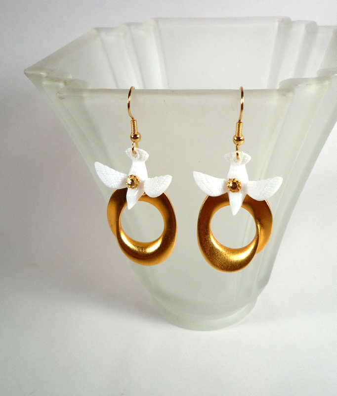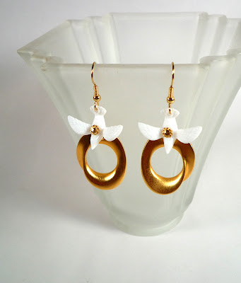 And how about earrings? Lookee these, which I have restyled from a pair of very clunky 1970's clip-ons: