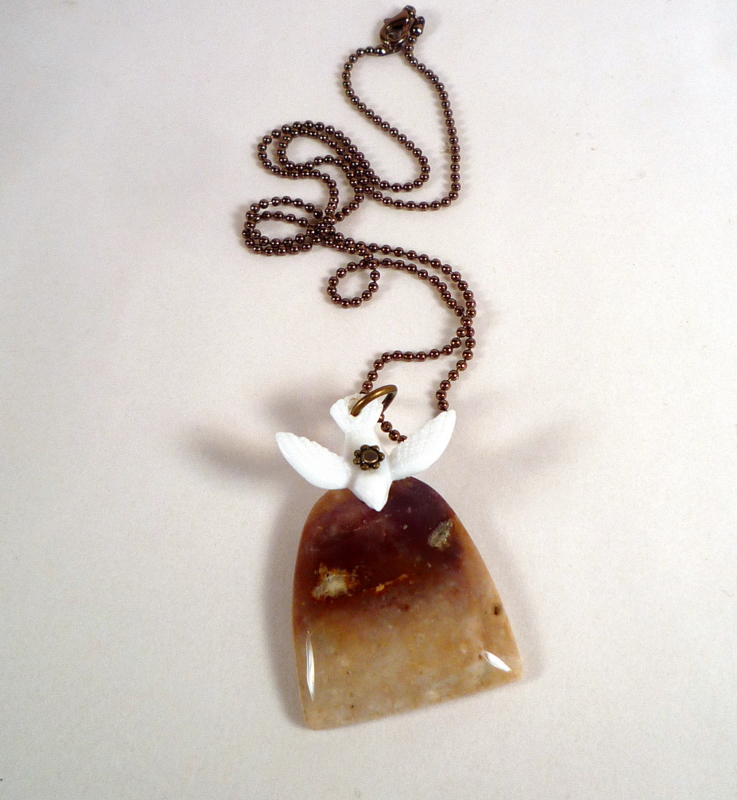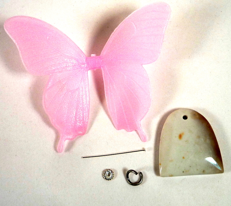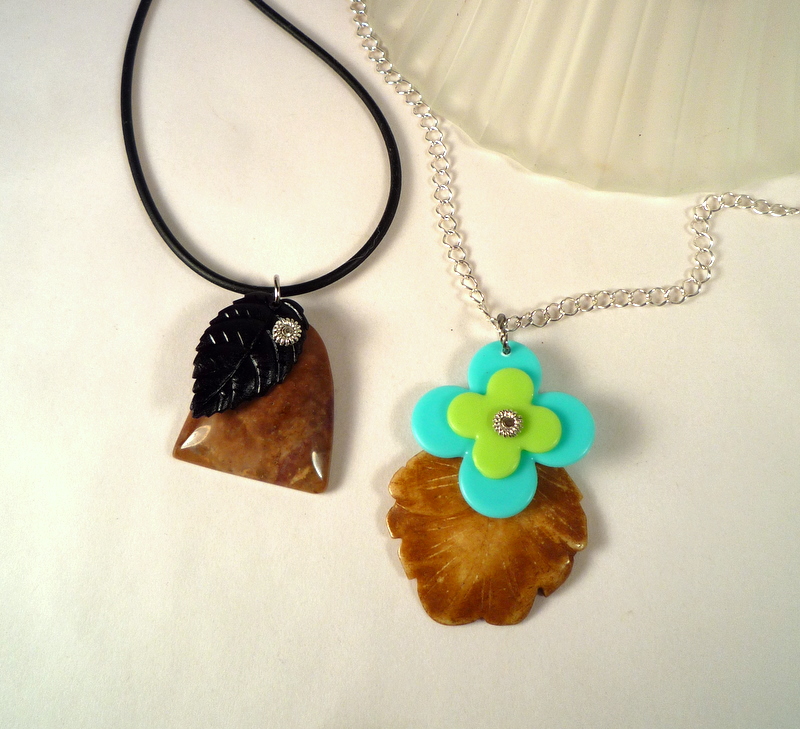 Hi, guys! Today, a nifty upcycled jewelry tutorial for using cute found objects to spice up a basic pendant. Like so: