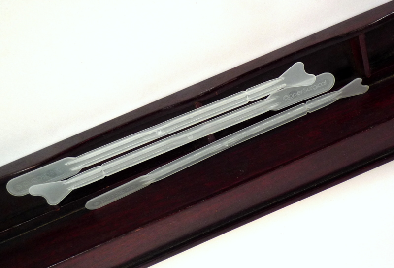 Still in the dark? Well, ahem, fine, I'll just say it. They are (sterile, brand new, unused) gynecological scrapers for doing Pap smear tests.