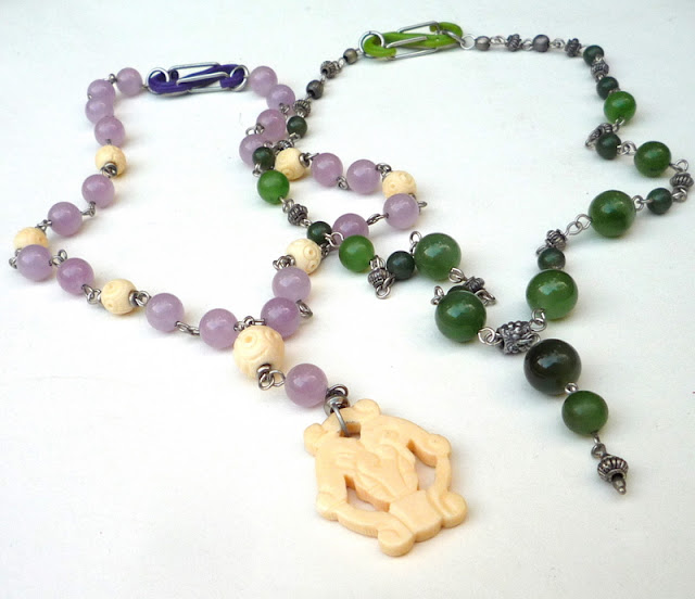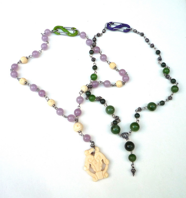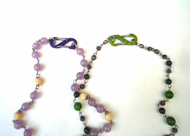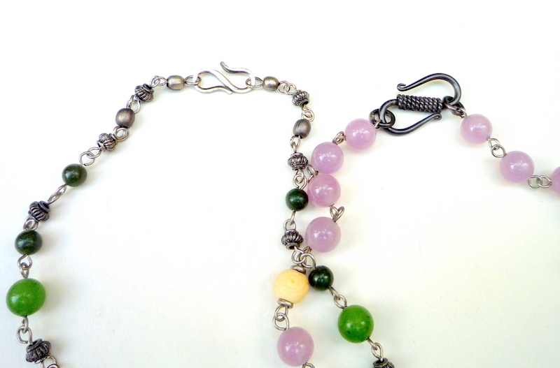 In those examples, I matched the clasp to the necklace colors. Green with green, purple with purple, right?