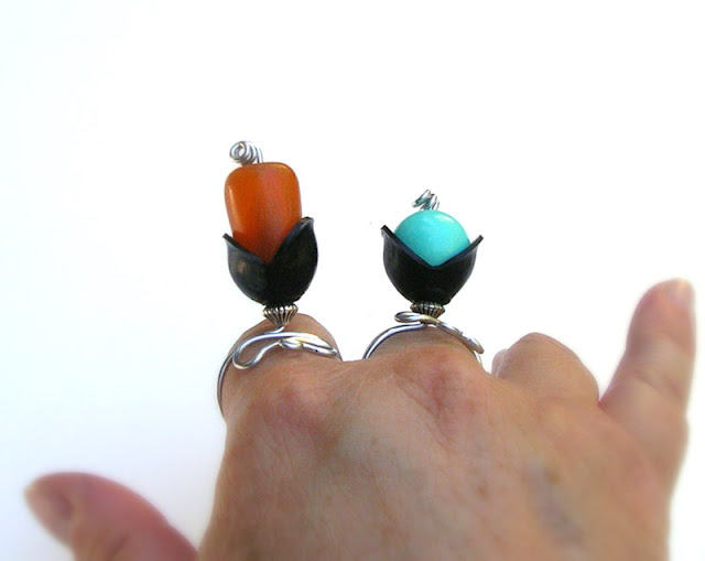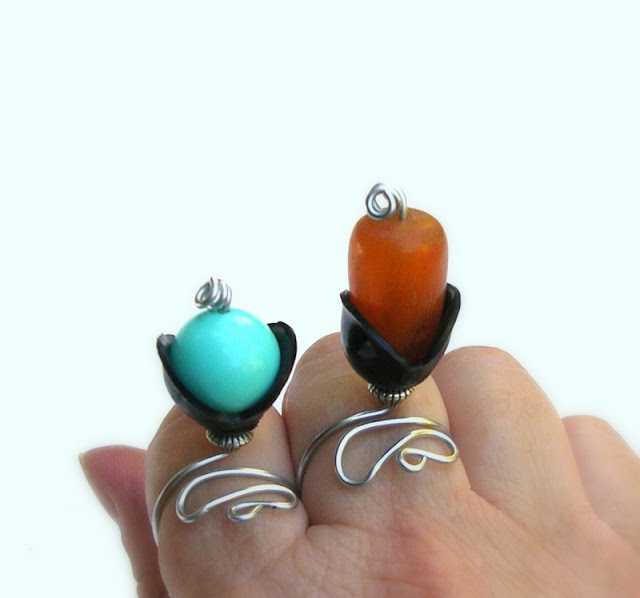 Callou callay, it's time for a new round of GUESS THE MYSTERY THING! Anyone can play! Simply take a gander at my latest upcycled jewelry project, these rings: