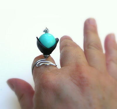 ReplyDeleteOkay, now that I've thought about it (and looked at novelties for a bit), my serious guess is the balls from ball and chain wedding shower favors. Detach the chain, slit them with a hot knife, pinch sides to open the cut, et voila! Little black tulips!