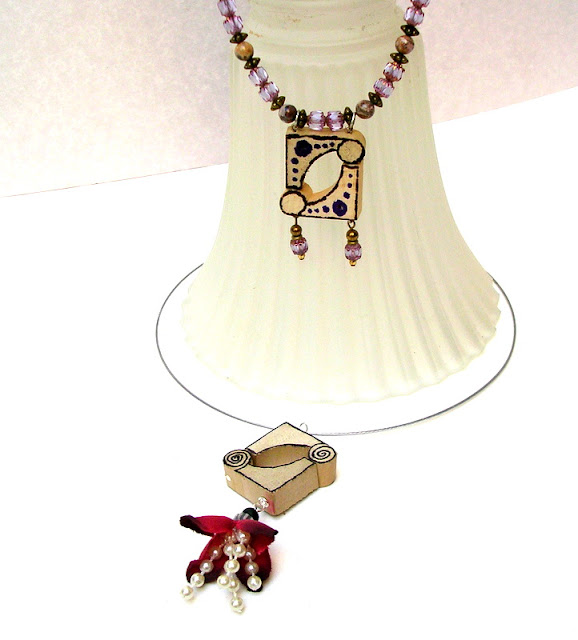 Sure, we've all seen necklaces made from Scrabble tiles. Sometimes initials with the letter tiles, sometimes art decoupaged onto the backs of them. But today I have something different to show. These: