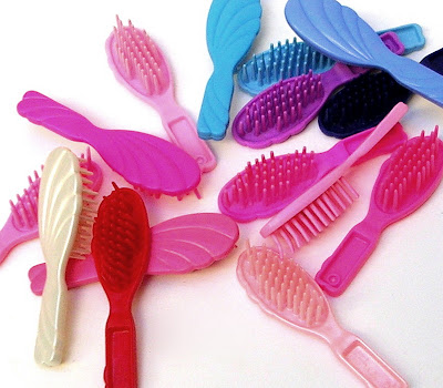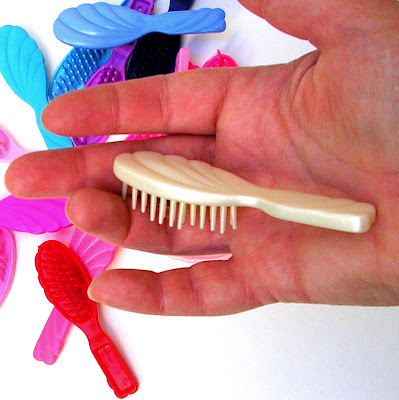 It's so funny to me that everybody guessed this. You see, I never had a Barbie, being a total tomboy. (I had Kiddles - but I chopped their hair short and dressed them in loincloths to turn them into boys. They had daring adventures. Once in a while I left one un-sex-changed, for the boys to save from deadly peril.) So I had never seen a Barbie hairbrush; they were mysterious to me, and I thought nobody else would guess. Silly moi!