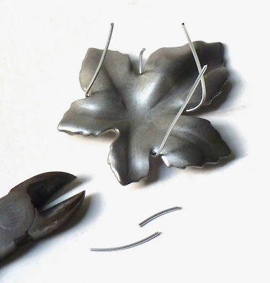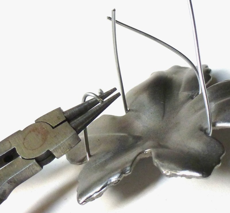 "But Mich," I hear you saying. "I happen to be fresh out of vintage steel leaves."* No problem! This swirly wire method will work with all kinds of objects that you can't (or don't want to) drill. The important thing is that your piece has a pattern of zigs and zags for the wires to settle into.