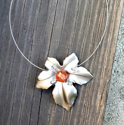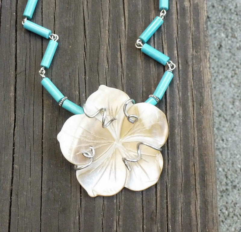Here's one I did with a carved shell flower that did not come with a hole, and is too fragile to drill: