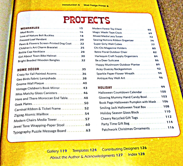 Mod Podge Rocks is absolutely packed with decoupage-y goodness. 40 fun and crafty projects - plus tips, tricks and expert advice on working with all the different Mod Podge formulas. Amy really went above and beyond - I love her sharp writing, all the cool guest star crafters, and the substantial content. This is no wimpy, la-di-da little craft book with a handful of dainty projects. It is big! It is meaty! It is worth the price of admission and then some!
