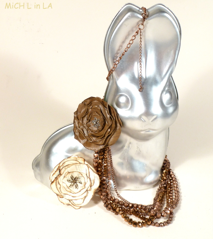 So the release paper flower was born, and joined its faux bois cousin. On this silver bunny, for no reason at all. Except it made a cute picture.