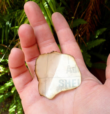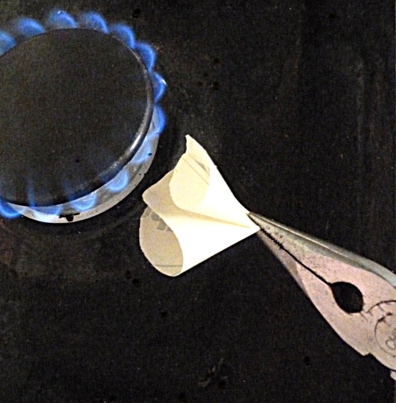 Anne P: An old love note from an ex boyfriend (see, it is faded) - you tore it up, cut it into a flower and burned the edges. Great