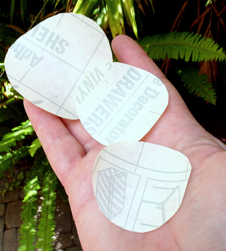 I rejected my faux bois flower as a Mystery Thing; not mysterious enough. Then it hit me! (Ow! Why does that keep happening?) Then I had an idea. I had all these discarded release-paper circles, which had been peeled away from the faux bois petals.