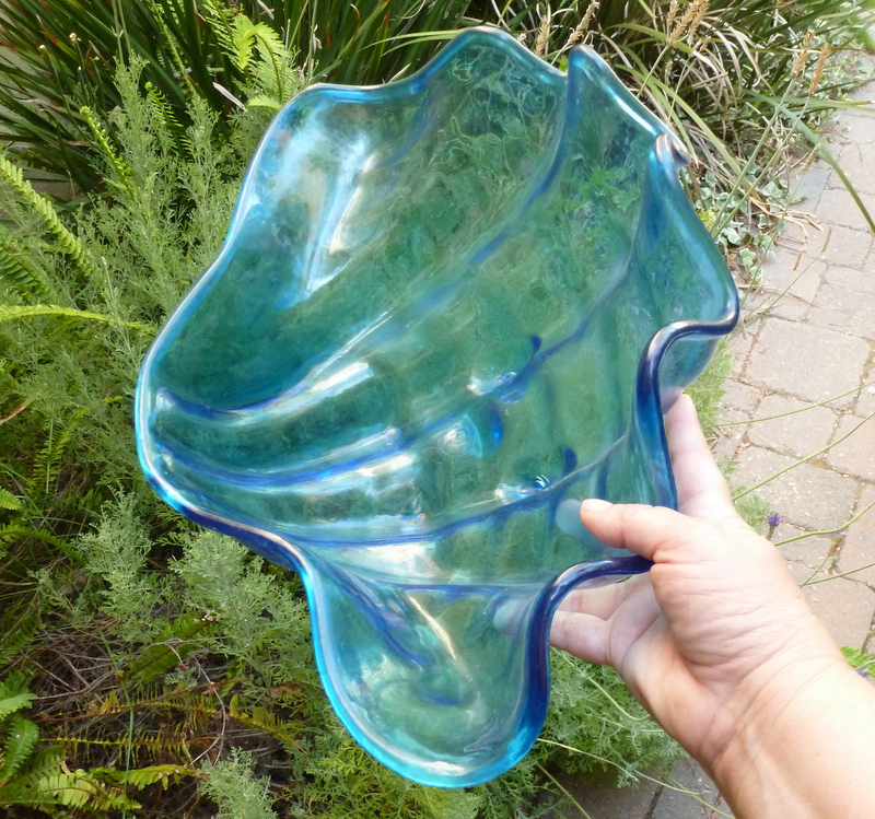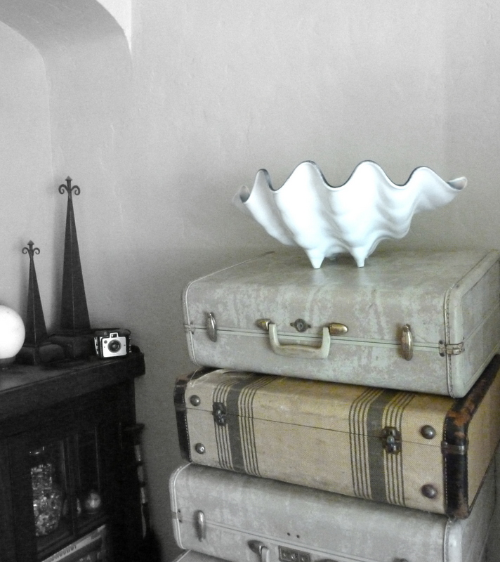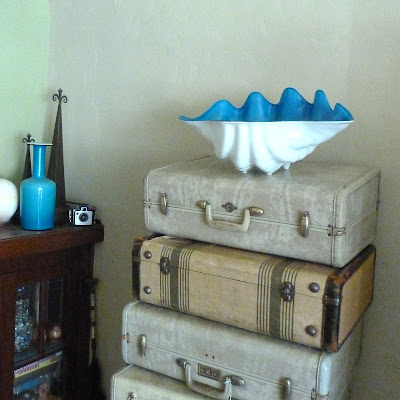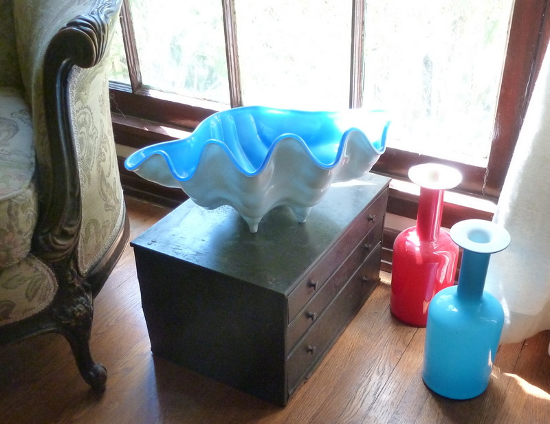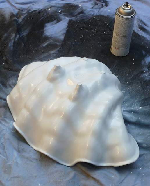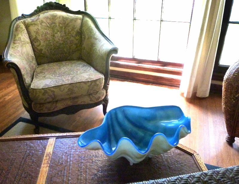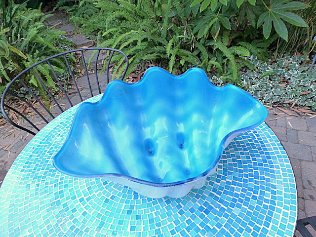 I found this plastic giant clam bowl at a yard sale. This really tacky, boringly-indeterminate-not-quite-aqua-blue, scratched-up, plastic giant clam bowl.