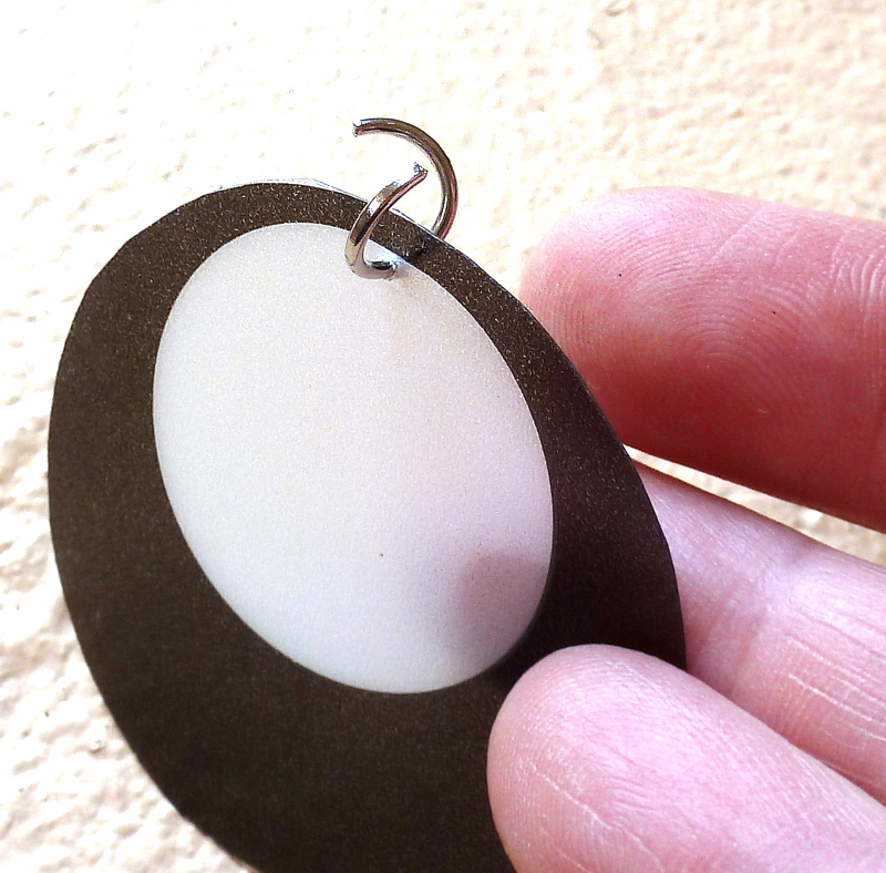 Cut a circle, then poke a little hole near the top. Add a jump ring to the hole. Like so: