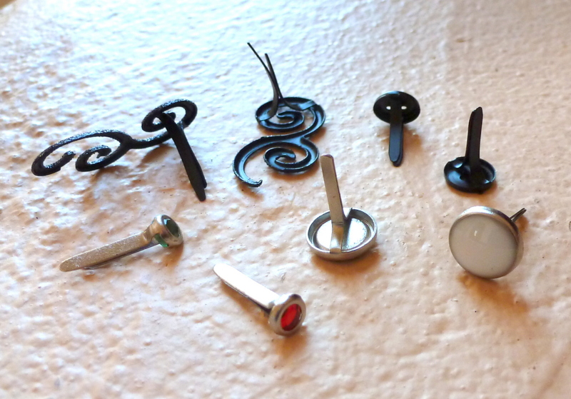 See how one loop is hiding inside? You can also snip off the extra arm, but when the brad is large enough, I like rolling it up to avoid having to file off a sharp edge.