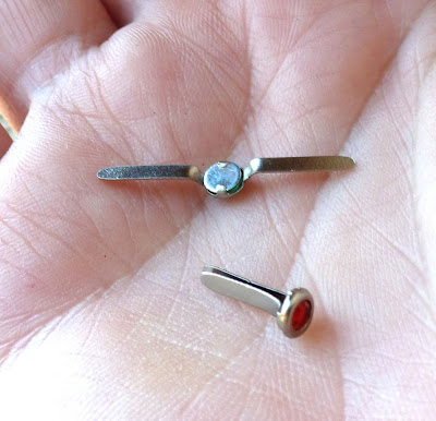 How sweet are these tiiiiny crystal earrings, with drops made from tiiiiny rhinestone brads?