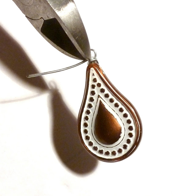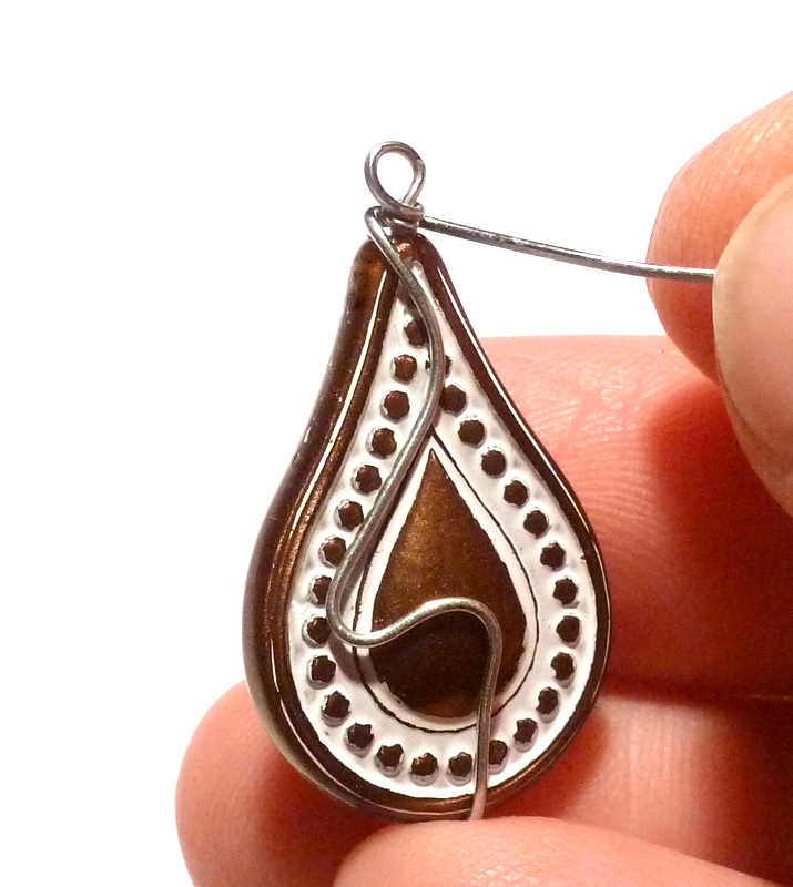 If you want to add a dangle to the pendant, you can make a second loop on the bottom of the bead, instead of immediately bending it up. Then finish with the swoops-up-the-back trick exactly the same way.