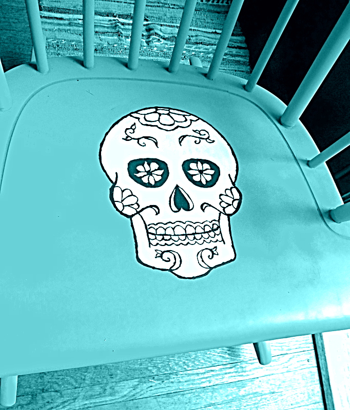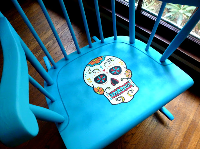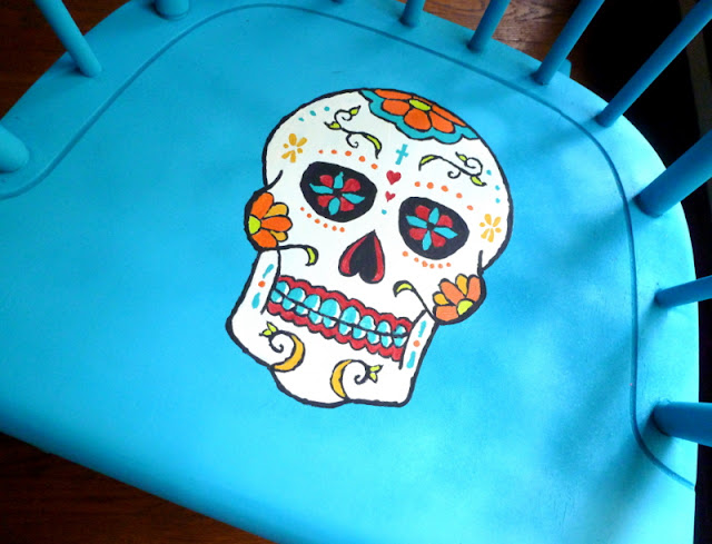 But for today, in the spirit of Martha and my new maturity, I thought I would show you how I decided to face my fear and tackle something...intense. Do you like my calavera chair? It's my first ever painted furniture attempt.